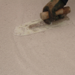 | 散水直後に木コテなどで、施工表面を敷き均す。養生は24時間行う。 |
